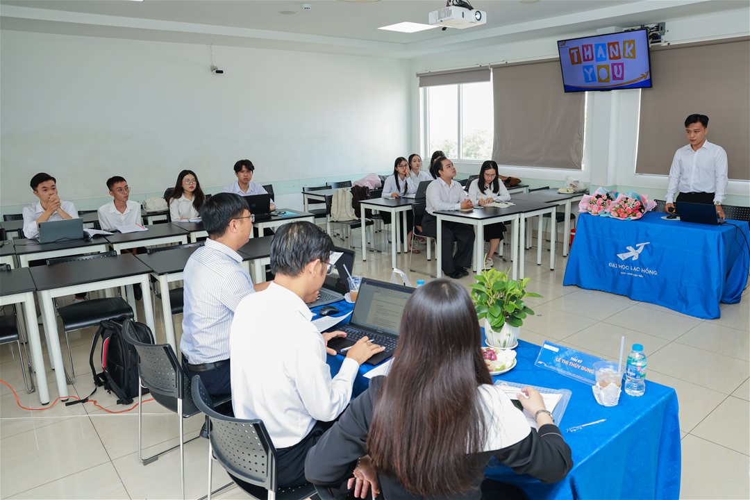 Sinh viên tự tin trình bày nội dung nghiên cứu, thể hiện khả năng tư duy logic, xử lý dữ liệu, lập luận khoa học và vận dụng kiến thức chuyên ngành. Các thành viên Hội đồng và giảng viên phản biện đã đưa ra nhiều câu hỏi sâu sắc về phương pháp nghiên cứu, độ tin cậy của số liệu, và tính thực tiễn của giải pháp đề xuất, qua đó giúp sinh viên hoàn thiện nội dung và mở rộng tư duy nghiên cứu.