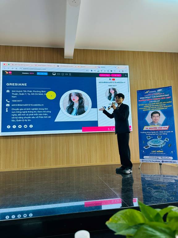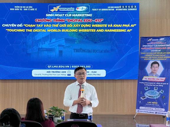 Buổi sinh hoạt CLB Marketing với chủ đề “Chạm tay vào thế giới số: Xây dựng Website và khai phá AI” nằm trong chuỗi chương trình Digital Edu #12 của Khoa Quản trị – Kinh tế Quốc tế được diễn ra vào sáng ngày 18/11/2025 tại Hội trường I209 – Cơ sở 6 Trường Đại học Lạc Hồng. Sự kiện đã thu hút đông đảo sinh viên tham gia, mang đến nhiều kiến thức bổ ích về Website, AI và Marketing số.