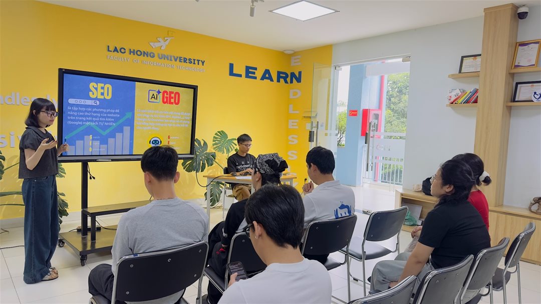 Sinh viên trình bày về SEO & GEO, nền tảng tối ưu hiển thị trong kỷ nguyên số.