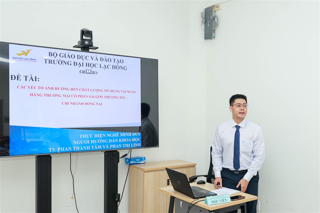 Ngày 23 tháng 10 năm 2025, tại phòng B107 (Phòng tiến sĩ) cơ sở 1 của Trường Đại học Lạc Hồng (LHU), Hội đồng đánh giá luận văn thạc sĩ chuyên ngành Tài chính - Ngân hàng đã tổ chức buổi bảo vệ luận văn cho 05 học viên. Buổi lễ diễn ra trong không khí trang trọng và đầy tính học thuật, với sự tham gia của các nhà khoa học, giảng viên uy tín và các chuyên gia đầu ngành.