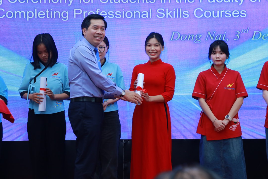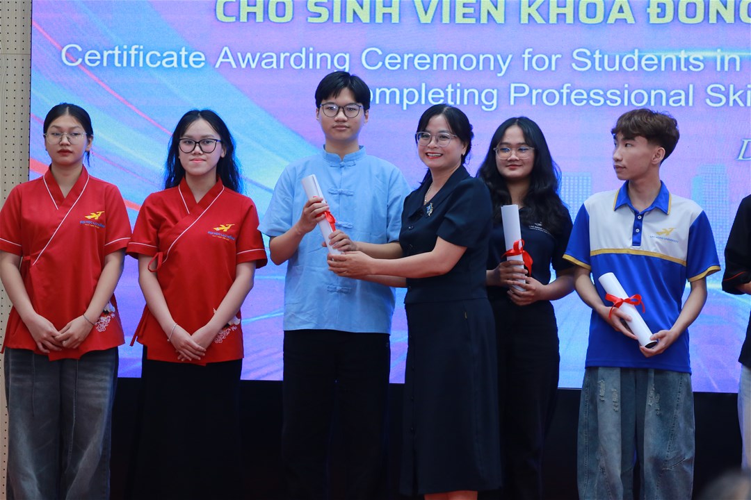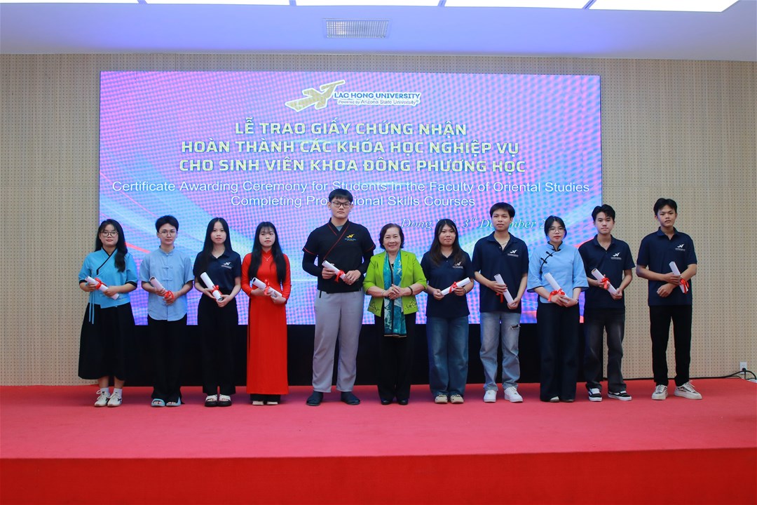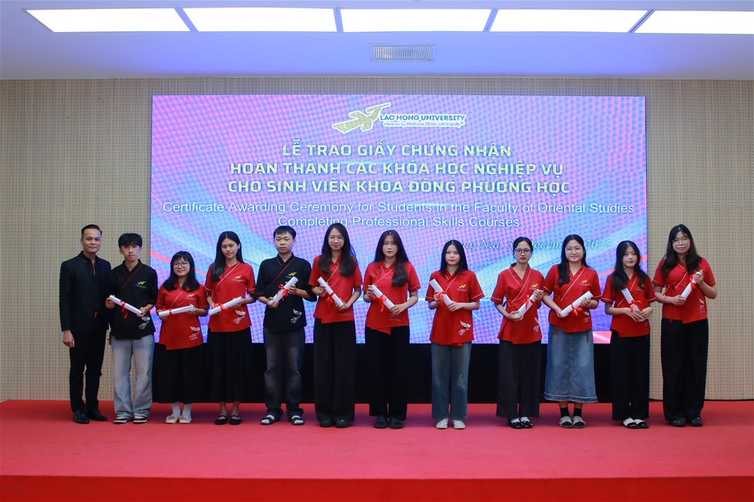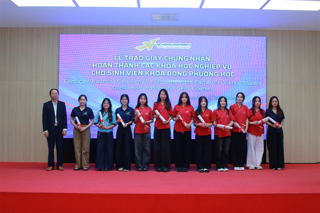 Hơn 93 sinh viên đã hoàn thành xuất sắc và nhận giấy chứng nhận nghiệp vụ trong Lễ trao Giấy chứng nhận hoàn thành các khóa học nghiệp vụ cho sinh viên Khoa Đông phương học vào ngày 03/12/2025 – sở hữu những kỹ năng “vàng” giúp sinh viên tự tin ghi dấu ấn ngay từ khi học tập và cho đến khi ra trường làm việc tại doanh nghiệp.