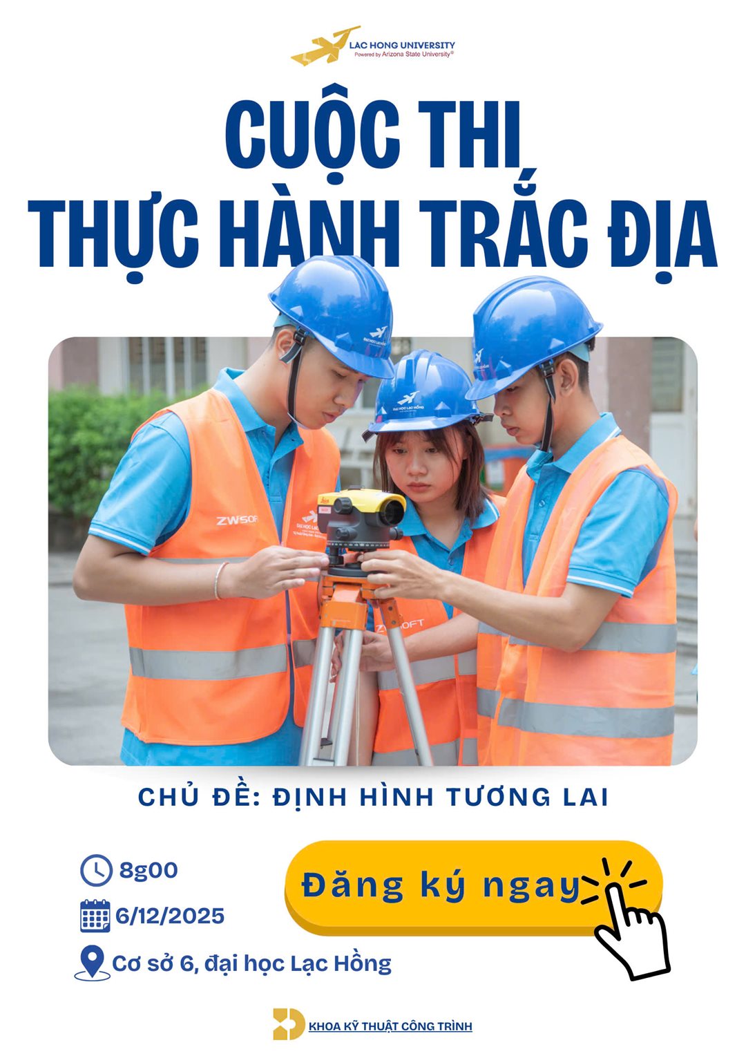 Nhằm tạo sân chơi học thuật chuyên sâu, giúp sinh viên rèn luyện kỹ năng thực hành đo đạc – xử lý số liệu thực địa và phát huy tinh thần đồng đội, Khoa Kỹ thuật Công trình trân trọng tổ chức cuộc thi: