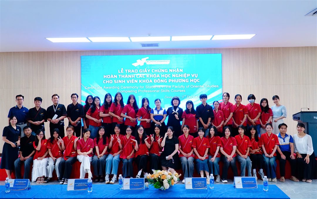 Ngày 3/12/2025, tại cơ sở 1 – Trường Đại học Lạc Hồng, Khoa Đông Phương học đã long trọng tổ chức Lễ trao Giấy chứng nhận các lớp học Nghiệp vụ nghề nghiệp cho sinh viên các ngành thuộc khoa. Sự kiện là hoạt động ghi nhận nỗ lực học tập và rèn luyện của sinh viên trong suốt học kỳ vừa qua.